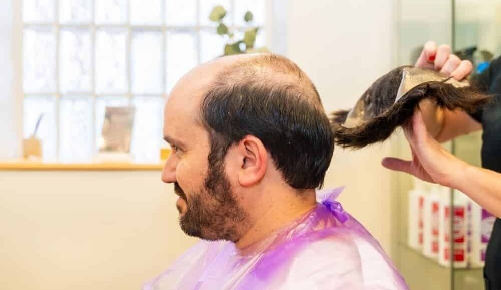 If you’re comfortable shaving the area with hair loss, a stick-on hair system could be a good fit. The shaved surface allows better adhesion for the glue or tape. Maintenance takes about an hour and can be done by yourself or with a professional.